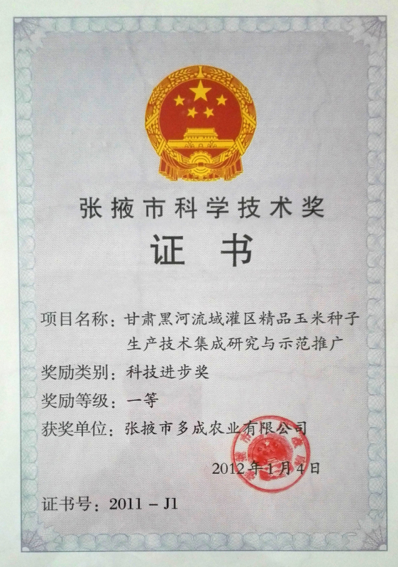 您現(xiàn)在的位置: 張掖市多成農(nóng)業(yè)有限公司 >> 資質(zhì)榮譽(yù) >> 公司榮譽(yù) >> 正文 |